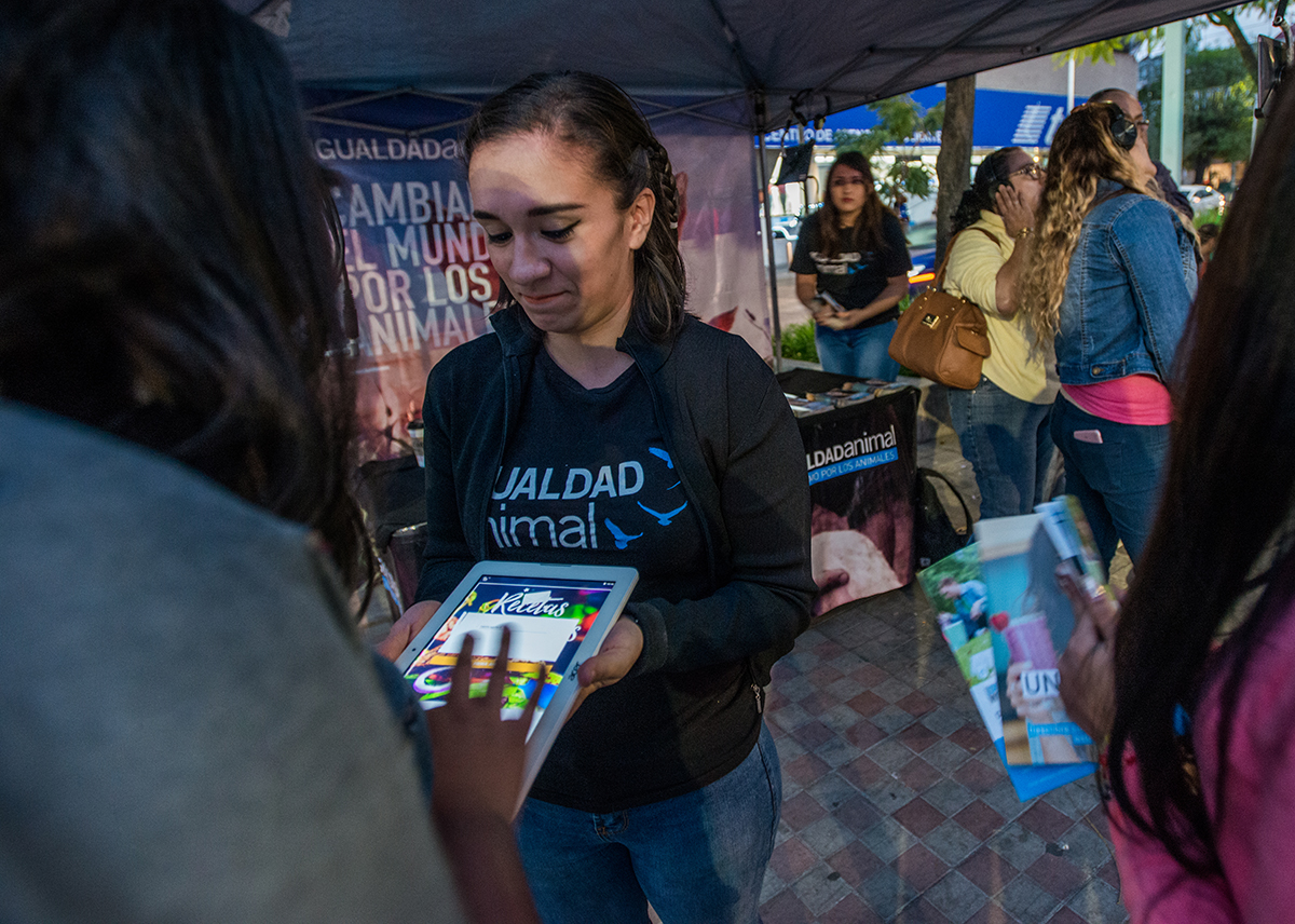 Fast forward to June 2011, when the Spanish government arrested 12 animal rights activists linked to Igualdad Animal (Animal Equality) in Spain, labeling them ‘eco-terrorists’. Hearing this news, Ramírez contacted the founder and president of Igualdad Animal, Sharon Núñez, to express solidarity with the activists. The following year, the Mexico chapter of Igualdad Animal was founded, with Ramírez at the helm.