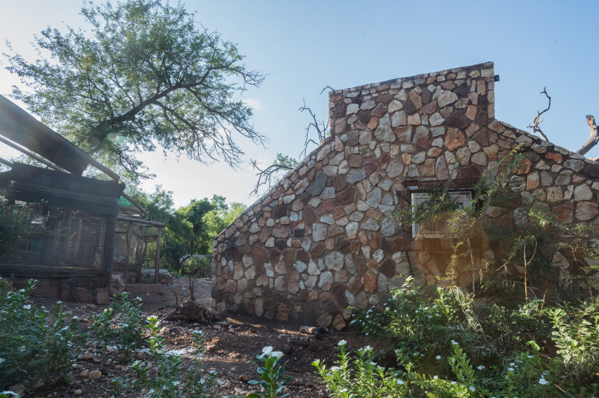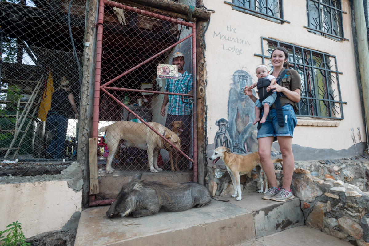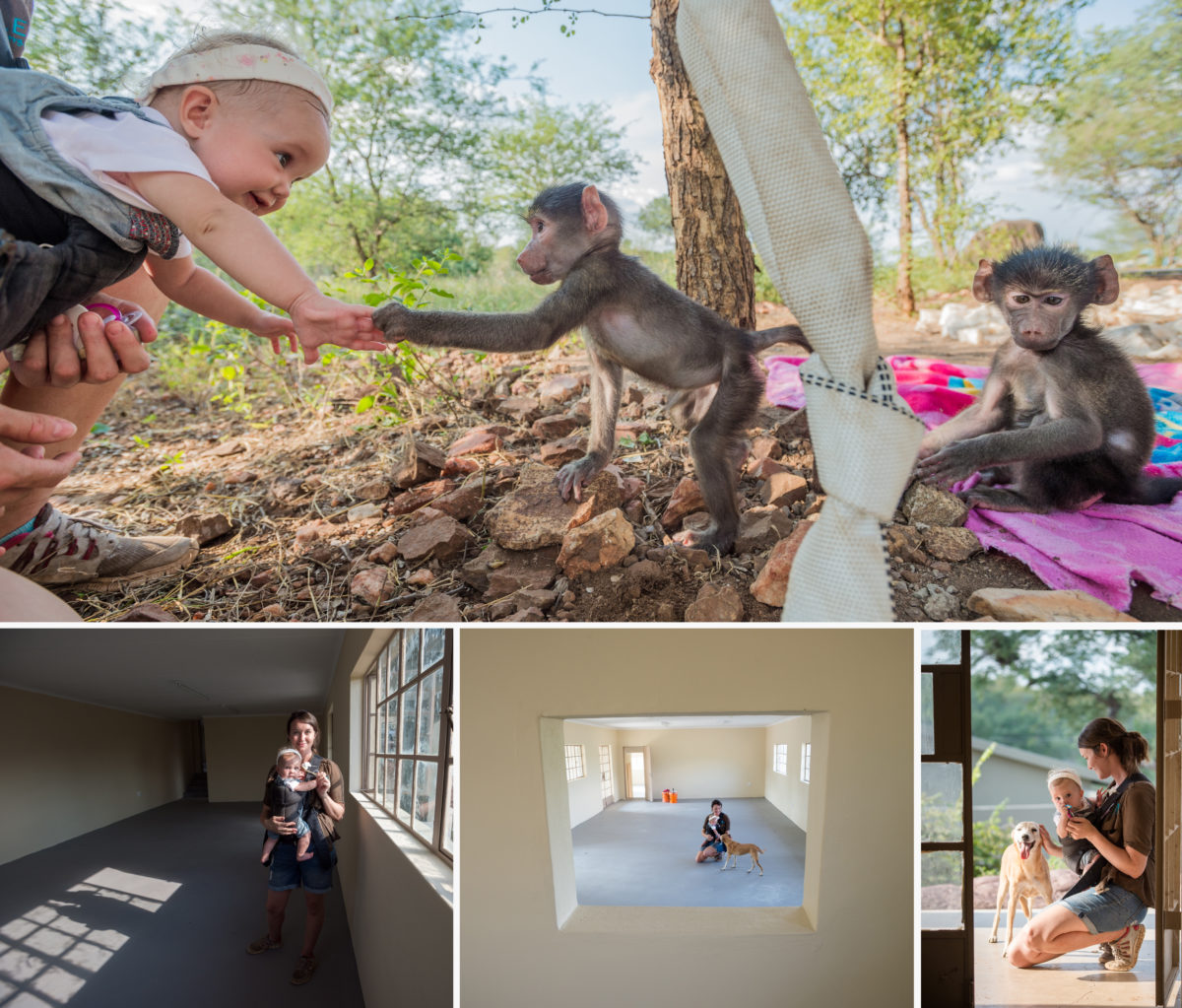 To say that day to day life at C.A.R.E. is challenging is an understatement. Snakes occasionally find their way into the centre’s kitchen. Most buildings are encaged to keep out wild baboons and residents who inevitably get loose on occasion. It’s sometimes necessary to run from elephants, who have broken through fences in search of food during droughts. The nearest town is a 45-minute drive away. The heat is unforgiving. Volunteer quarters are small and shared. Even Dewhirst and Munro, who became a couple about seven years ago and live full-time on C.A.R.E.’s grounds, didn’t have their own bathroom until after the birth of their daughter, Sophia, now two-and-a-half.